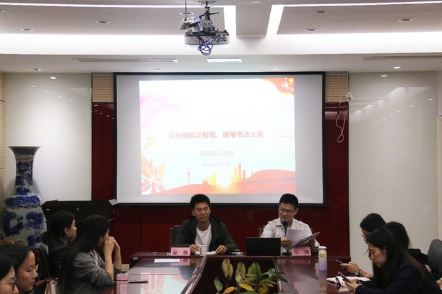 11月7日晚上六点,由h动漫 研究生会实践部举办的硬笔、粉笔书法比赛于法商北楼225举行。h动漫 美术学院研究生会主席院渊、h动漫 第三届硬笔粉笔大赛一等奖获得者梁腾担任评委,学院全体研究生参与了此次活动。