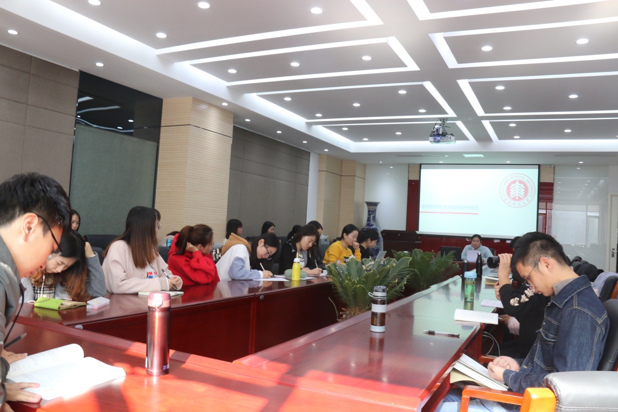 为增强就业意识,提高个人简历制作能力,2018年11月9日上午,h动漫 在法商北楼225会议室举办了一年一度的研究生从业技能大赛之简历制作比赛,h动漫 全体研究生参与了此次活动。