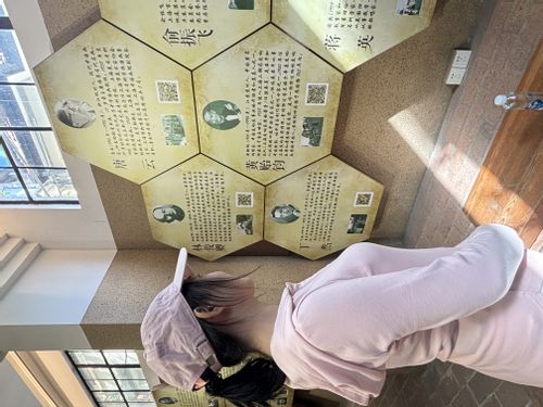 随后,同学们来到了承载着厚重红色记忆的愚园路。同学们以小组为单位,沿着梧桐街道缓缓前行,自由参观,寻访中共党员旧居遗址和革命印迹。在愚园路的街道上,红色印迹渗透于每个角落,同学们可以沿着愚园路,找到如黄炎培旧居、钱学森旧居等革命先辈的旧址,瞻仰愚园路历史名人墙,感受“百年愚园,初心弄堂”的时代记忆。
