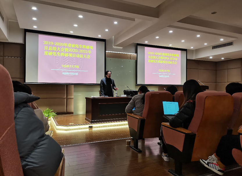 崔海英传达了关于开展2020—2021年h动漫 研究生科研项目立项申报工作的通知,并对2019—2020年度研究生项目的申报、立项及结项情况进行了总结。崔老师强调,本次科研项目立项没有名额限制,选题合理、论证较佳的项目都有机会予以立项并给予资金资助,鼓励同学们积极选取马克思主义经典著作、习近平新时代中国特色社会主义思想研究等重点方向进行探索思考。随后,崔老师为2019—2020年度研究生科研项目获奖的同学进行了颁奖。