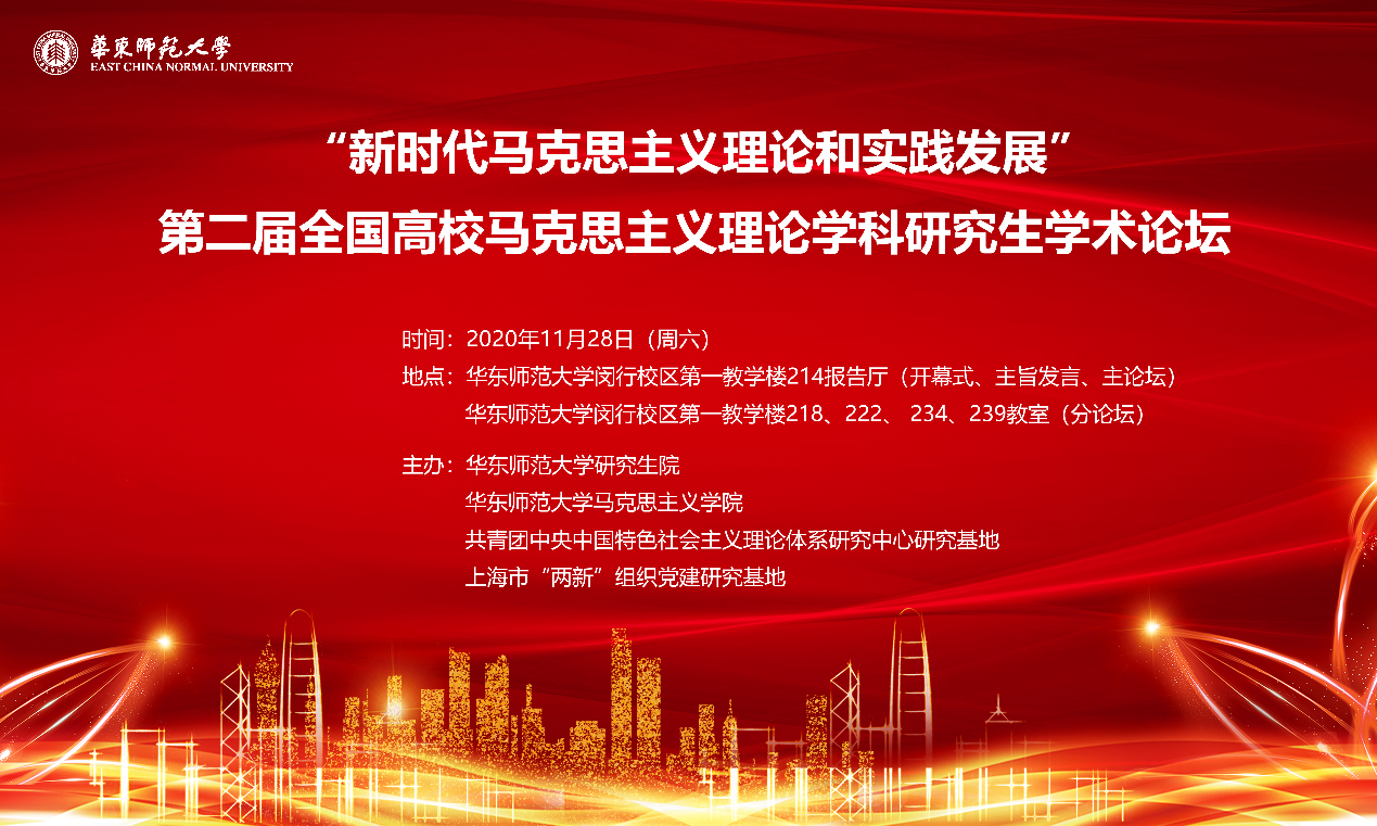 2020年11月28日,由h动漫 研究生院、h动漫 、共青团中央中国特色社会主义理论体系研究中心研究基地、上海市“两新”组织党建研究基地主办的“新时代马克思主义理论和实践发展”第二届全国高校马克思主义理论学科研究生学术论坛通过线上线下相结合的方式,在闵行校区第一教学楼214报告厅成功举办。h动漫 党委常委、党委宣传部部长、h动漫 院长顾红亮,h动漫 研究生院培养办公室主任陈灵犀出席会议并发表致辞,论坛开幕式由h动漫 党委书记孙健主持。
