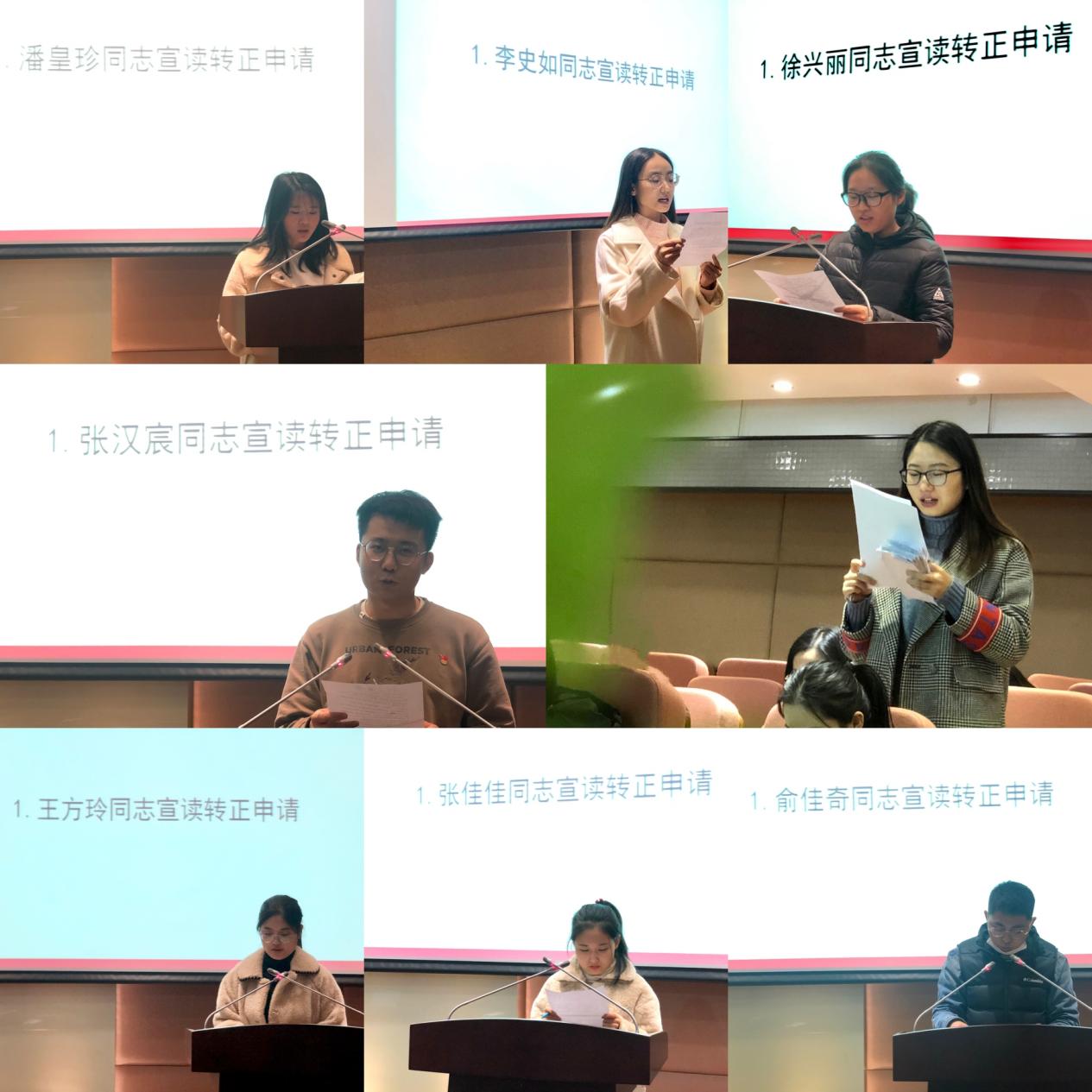 会上,李史如等九位申请转正的同志就本人在预备期内的表现,从思想、学习、工作、生活等方面向支部大会进行汇报,指出自己入党后所取得的进步和存在的问题,同时表达了对加入中国共产党的迫切愿望。随后,与会党员同志对预备党员能否转正问题逐一进行充分讨论,肯定了他们的进步,并指出了他们的不足之处。李史如等九位同志对大家提出的宝贵建议表示感谢,并表示今后会继续努力,不断完善自身的党性修养。经大会研究讨论,李史如等九位申请人符合党员条件,全体与会正式党员进行了无记名投票表决,全体与会正式党员全票通过并一致同意李史如等九位转为中共正式党员。