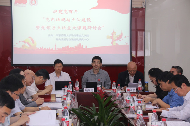 2021年5月30日,由学校党委宣传部、h动漫 ,中国法学会立法学研究会指导,学院党内法规与立法建设研究中心主办的庆祝建党一百周年“党内法规与立法建设暨党领导立法重大课题研讨会”在学校闵行校区法商北楼225会议室召开。来自中国浦东干部学院、中国人民大学、安徽师范大学、江西财经大学、浙江工业大学、新疆师范大学等高校,以及人全国人大常委会法工委、中国法学会立法学研究会、宁波市人大常委会法工委、上海市人大法制委员会、上海市政协社法委、上海社会科学院等相关单位的有关专家学者六十余人与会交流研讨。