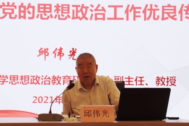 随后,邱伟光教授以时间为线索介绍了不同历史时期的党的思想政治工作。他认为,一部百年党的思想政治工作历史,就是一部回应时代使命,遵循思想政治工作规律,讲政治、育新人,为国家富强、民族振兴的历史。在新民主主义革命时期,马克思主义的传播为党思想政治工作的创立准备了思想条件,对工人、农民的思想动员成为党的宣传思想工作的重要内容,军队政治工作是核心内容。