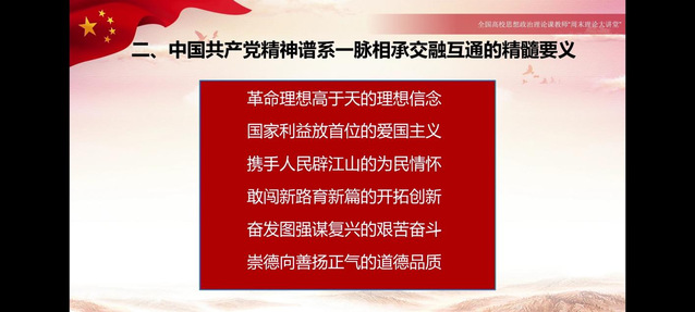 在讲座的第二部分,王易老师从中国共产党在百年伟大实践中建树独特的精神谱系、中国共产党精神谱系一脉相承交融互通的精髓要义、新时代长征路上赓续中国共产党精神谱系的着力点这三个方面展开讲解。她强调,中国共产党精神谱系是中国共产党在革命、建设、改革的伟大实践过程中所创造的各种精神的集合,在新时代,我们更要将党的精神谱系传承下去。